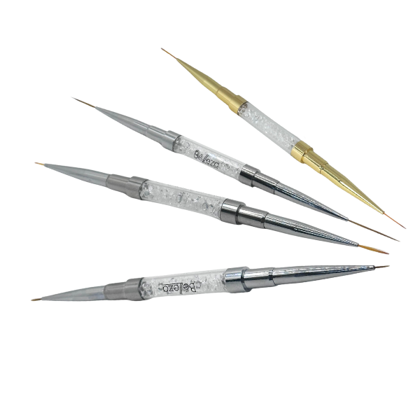 Dual-ended nail liner brushes 5mm/7mm, 6mm/12mm 12mm/15mm, and 20mm/25mm from Belleza. They come in nylon and in kolinsky.