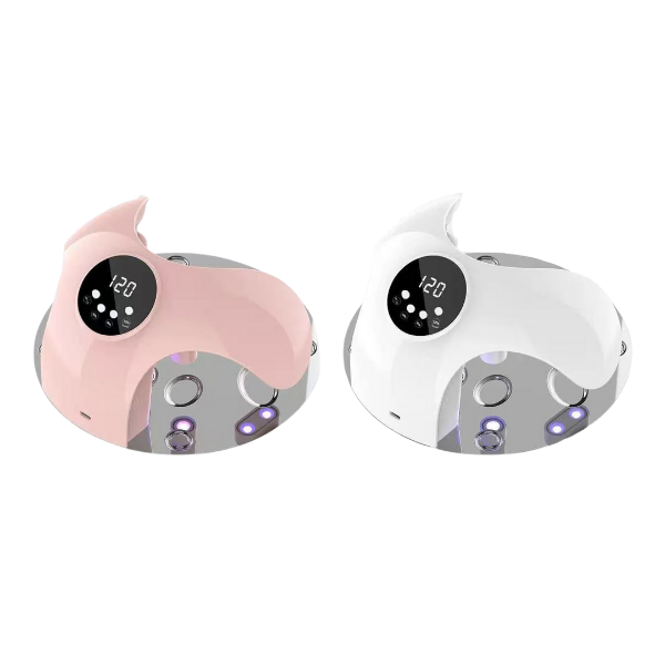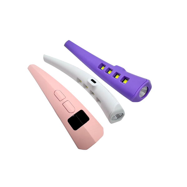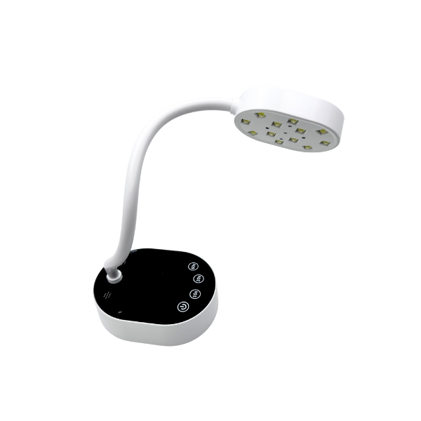 USB rechargeable single UV LED nail lamp with white and gold handle.