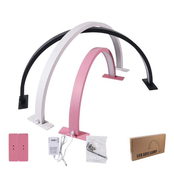Multi-usage LED half moon desk light with a fancy rhinestone top, and a button to adjust brightness and to switch between different dimming. Ideal for nail artists, crafting people, lash techs, and many more.